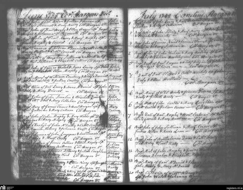 St. Mary's, Cork city; County of Cork; Diocese of Cork and Ross. Baptisms, June 1788 to July 1788