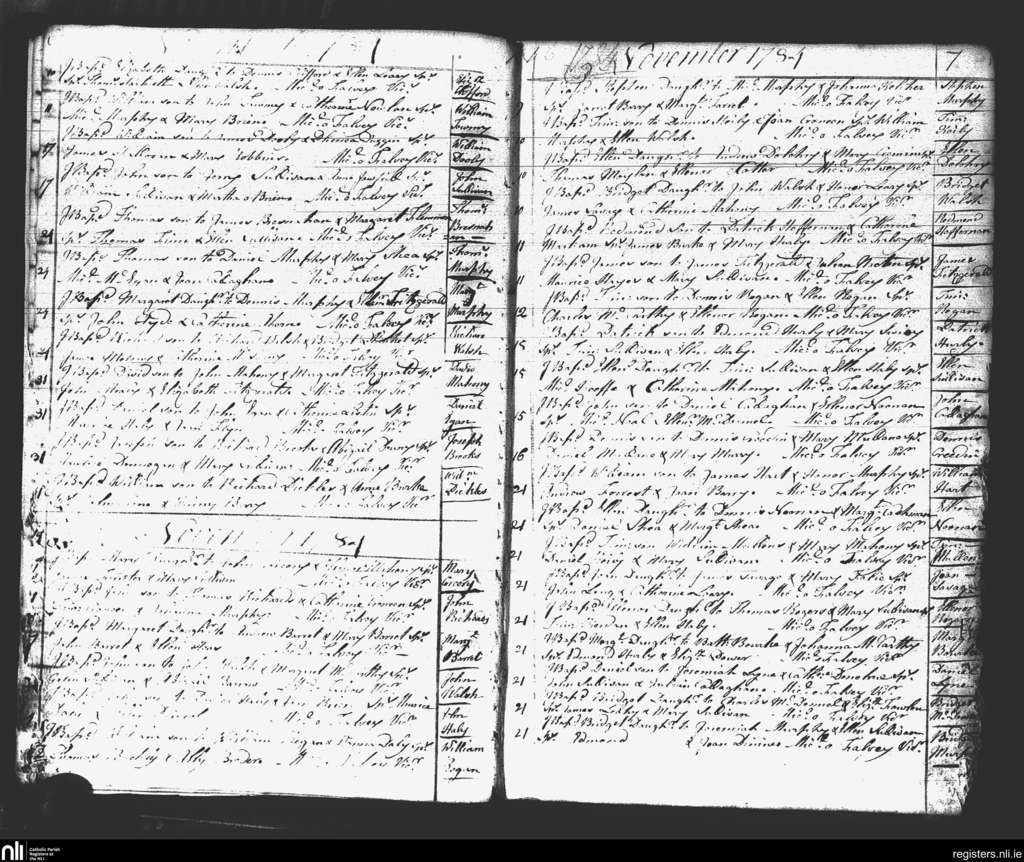 St. Mary's, Cork city; County of Cork; Diocese of Cork and Ross. Baptisms, Oct. 1784 to Nov. 1784