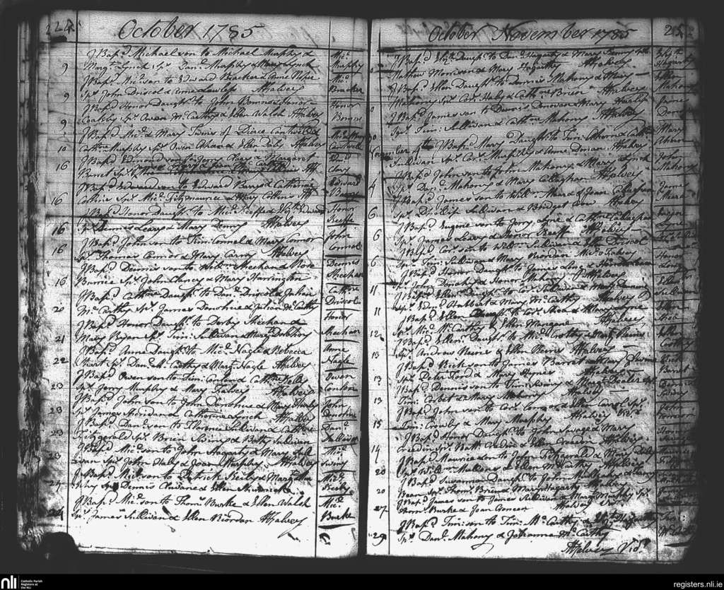 St. Mary's, Cork city; County of Cork; Diocese of Cork and Ross. Baptisms, Oct. 1785 to Nov. 1785