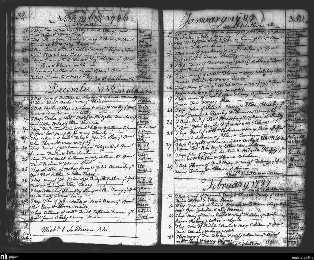 St. Mary's, Cork city; County of Cork; Diocese of Cork and Ross. Baptisms, Nov. 1786 to Feb. 1787