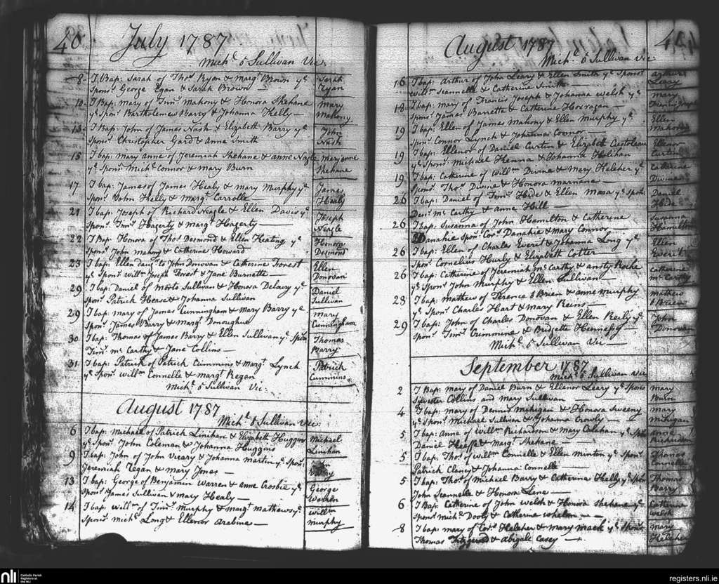 St. Mary's, Cork city; County of Cork; Diocese of Cork and Ross. Baptisms, July 1787 to Sep. 1787