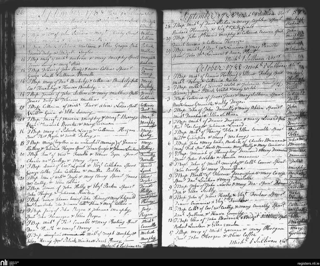 St. Mary's, Cork city; County of Cork; Diocese of Cork and Ross. Baptisms, Sep. 1788 to Oct. 1788
