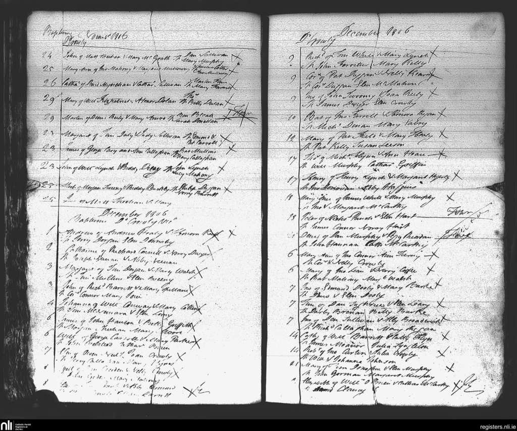 St. Mary's, Cork city; County of Cork; Diocese of Cork and Ross. Baptisms, Nov. 1806 to Dec. 1806