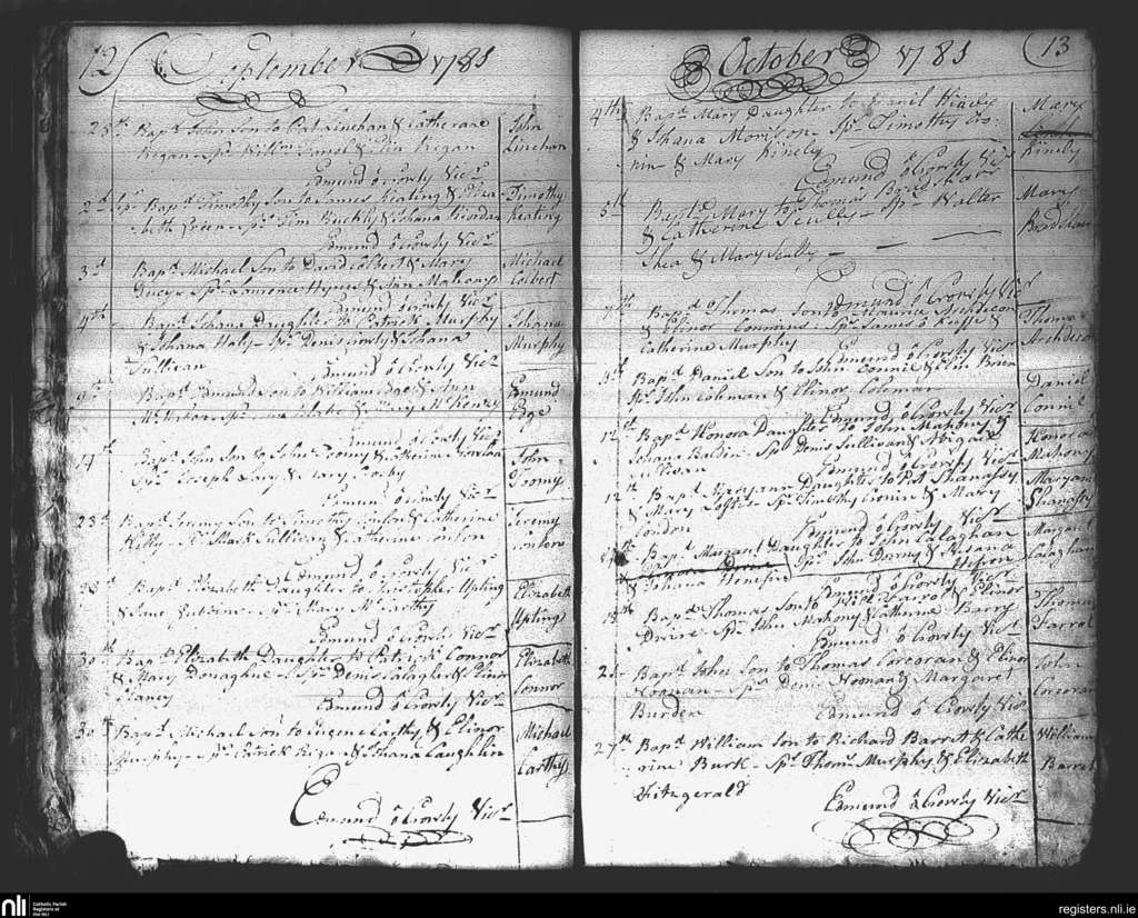 St. Mary's, Cork city; County of Cork; Diocese of Cork and Ross. Baptisms, Sep. 1781 to Oct. 1781