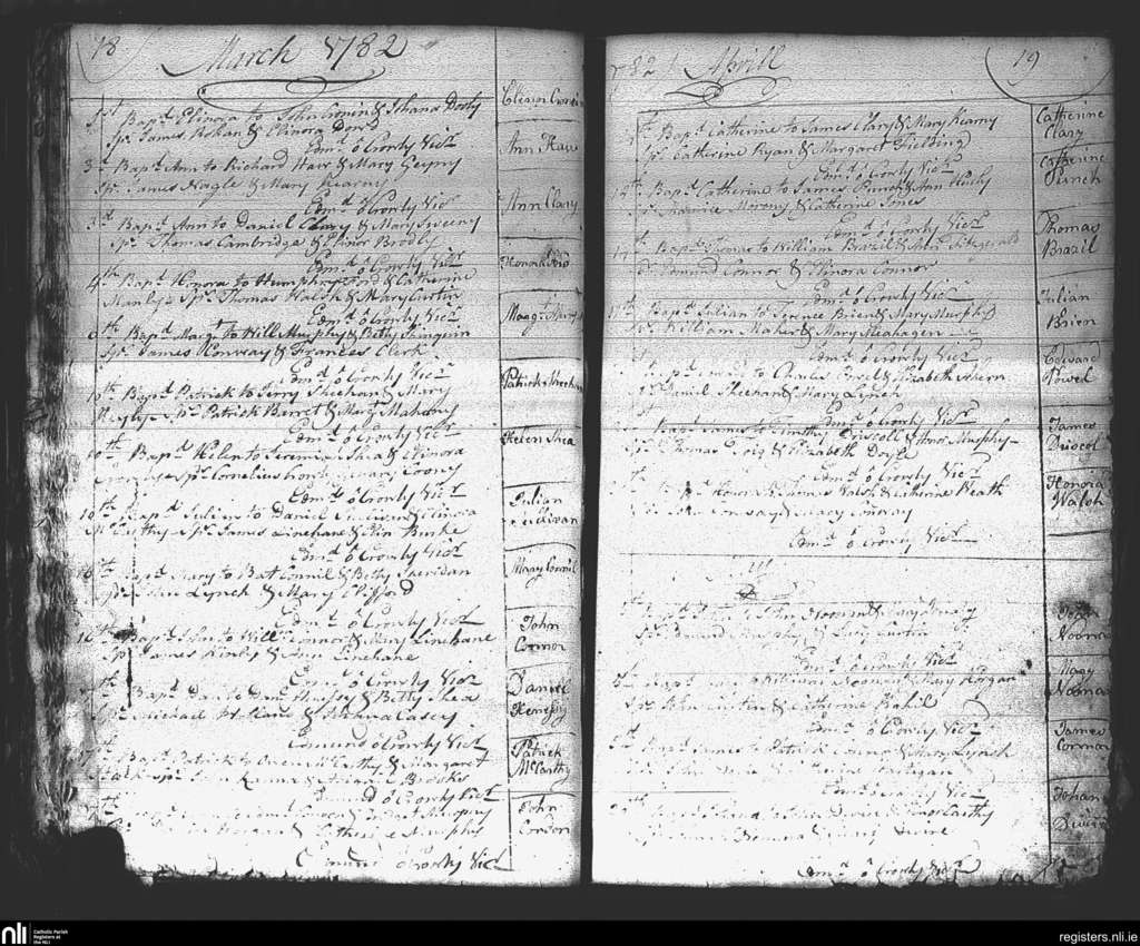 St. Mary's, Cork city; County of Cork; Diocese of Cork and Ross. Baptisms, Mar. 1782 to May 1782