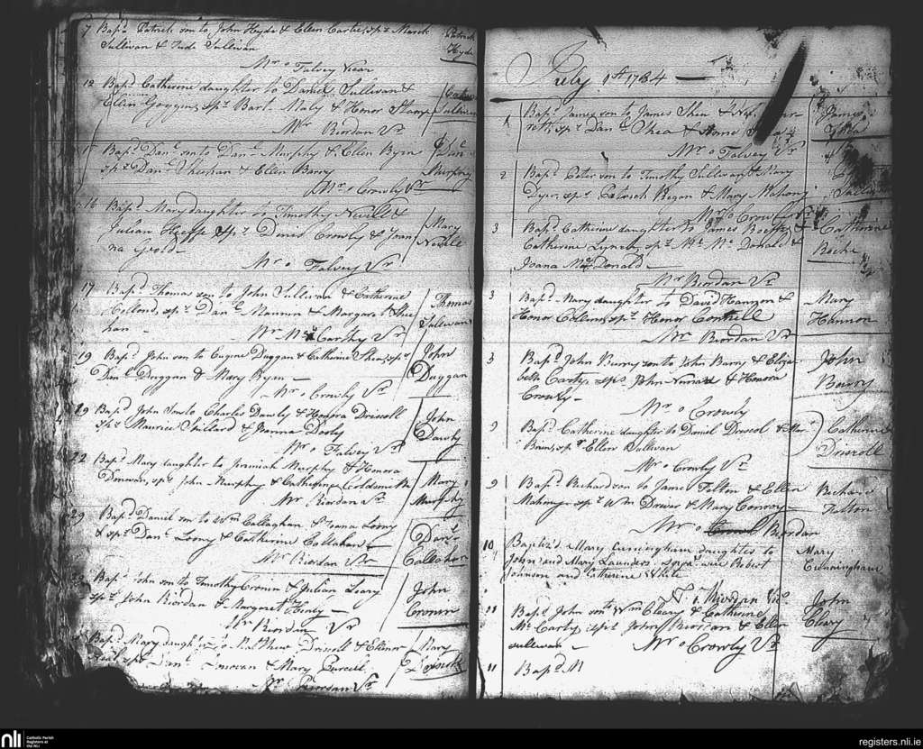 St. Mary's, Cork city; County of Cork; Diocese of Cork and Ross. Baptisms, June 1784 to July 1784