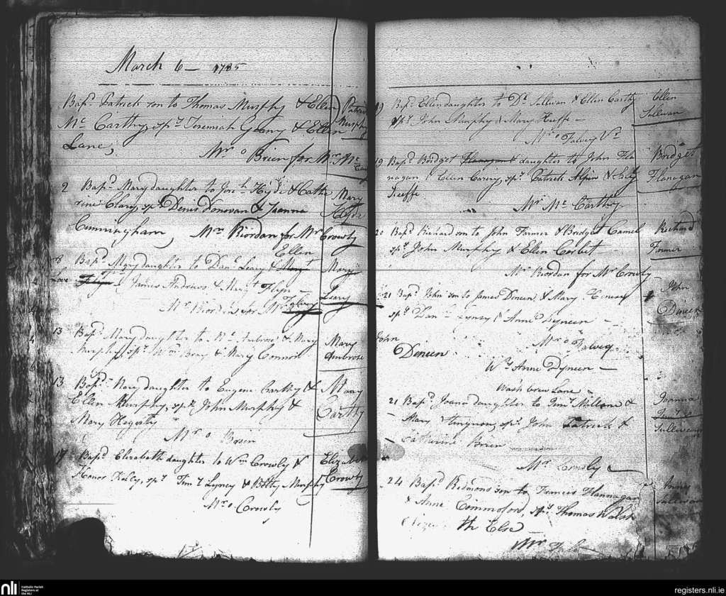 St. Mary's, Cork city; County of Cork; Diocese of Cork and Ross. Baptisms, Mar. 1785