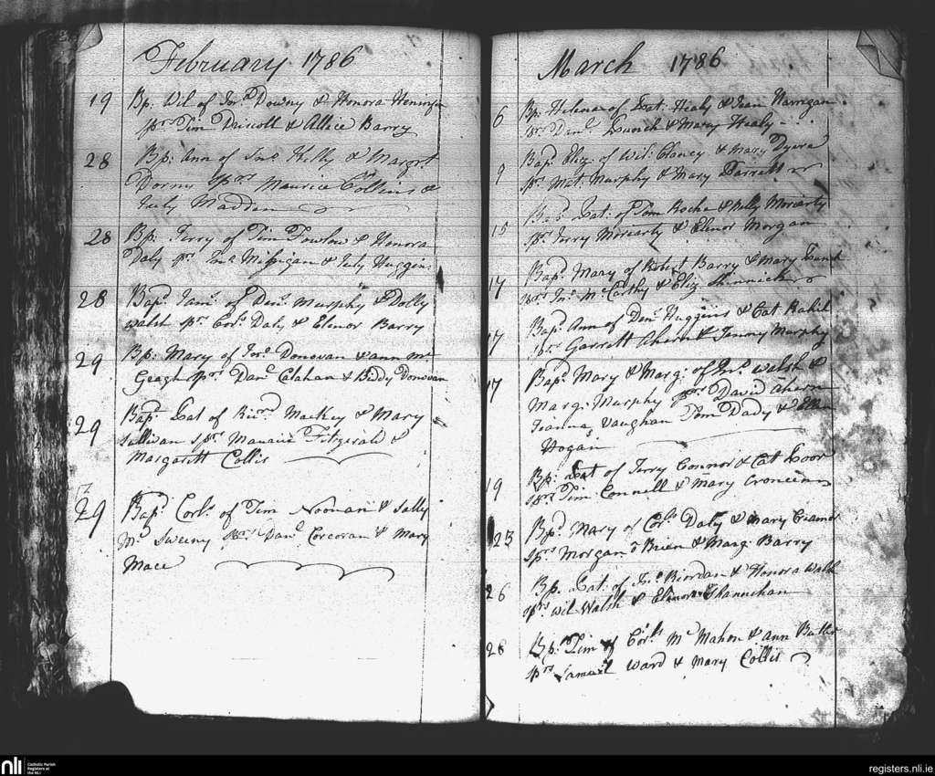 St. Mary's, Cork city; County of Cork; Diocese of Cork and Ross. Baptisms, Feb. 1786 to Mar. 1786