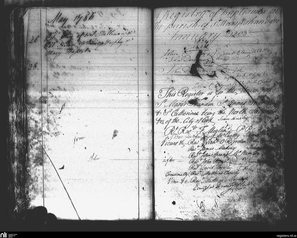 St. Mary's, Cork city; County of Cork; Diocese of Cork and Ross. Baptisms, May 1786