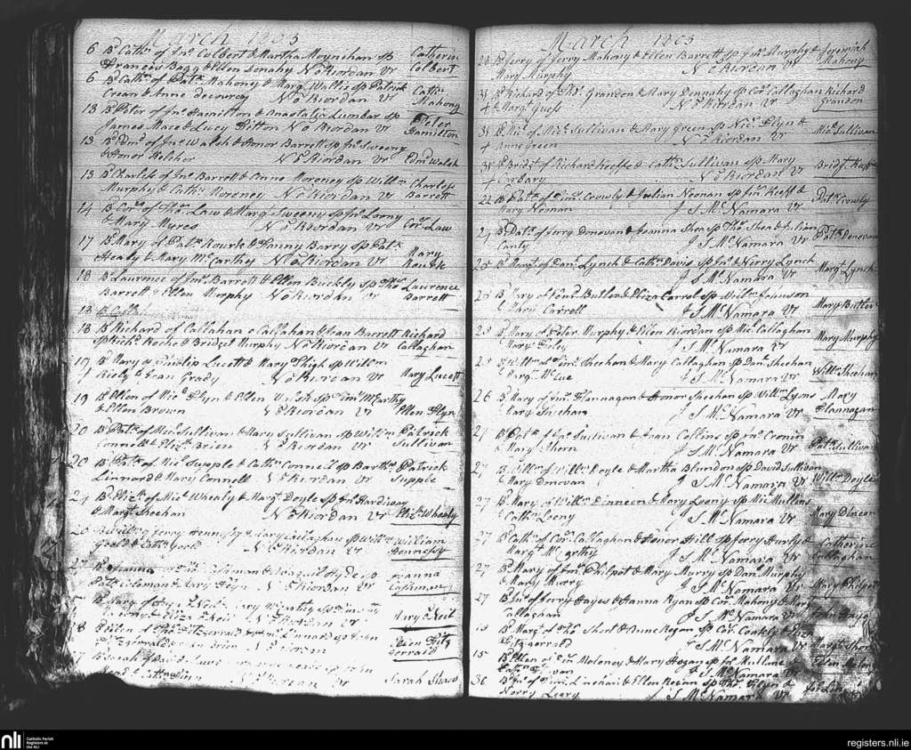St. Mary's, Cork city; County of Cork; Diocese of Cork and Ross. Baptisms, Mar. 1803