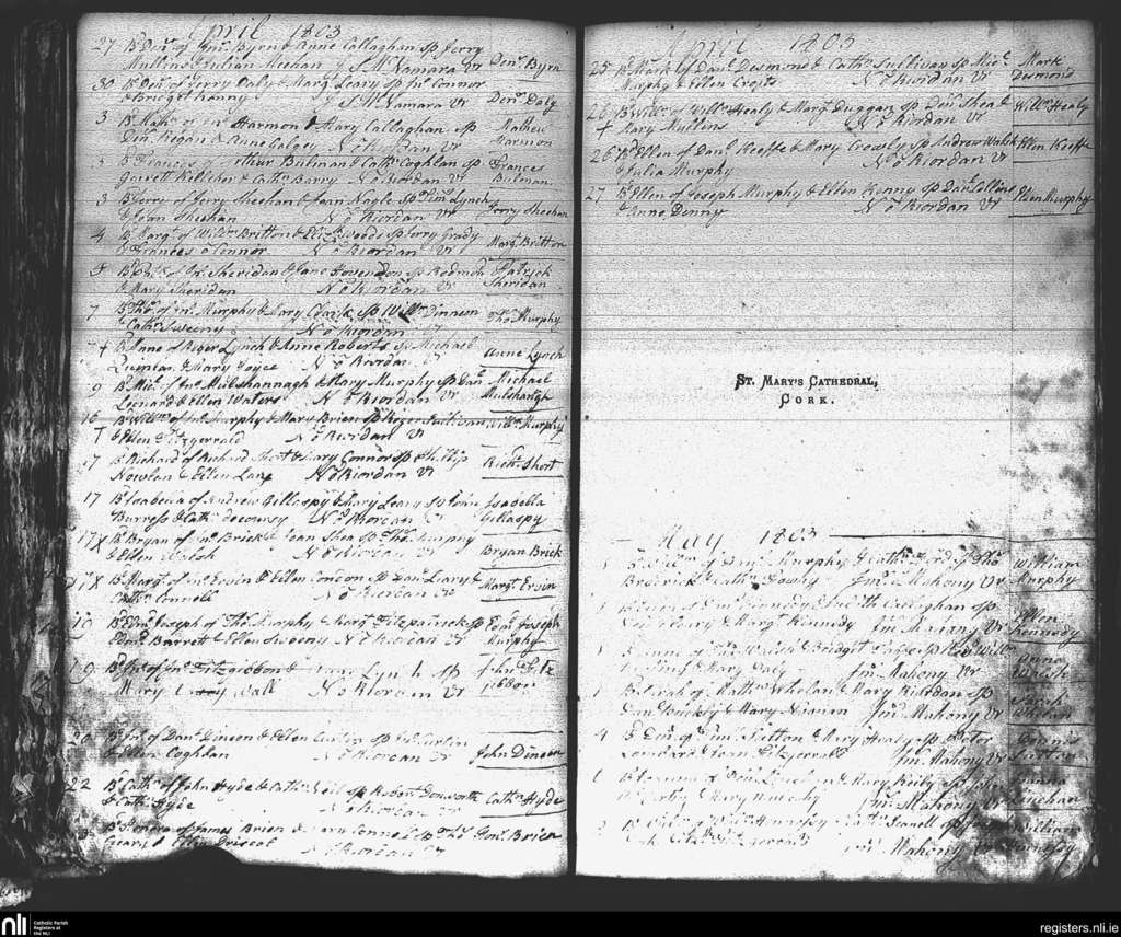 St. Mary's, Cork city; County of Cork; Diocese of Cork and Ross. Baptisms, Apr. 1803 to May 1803