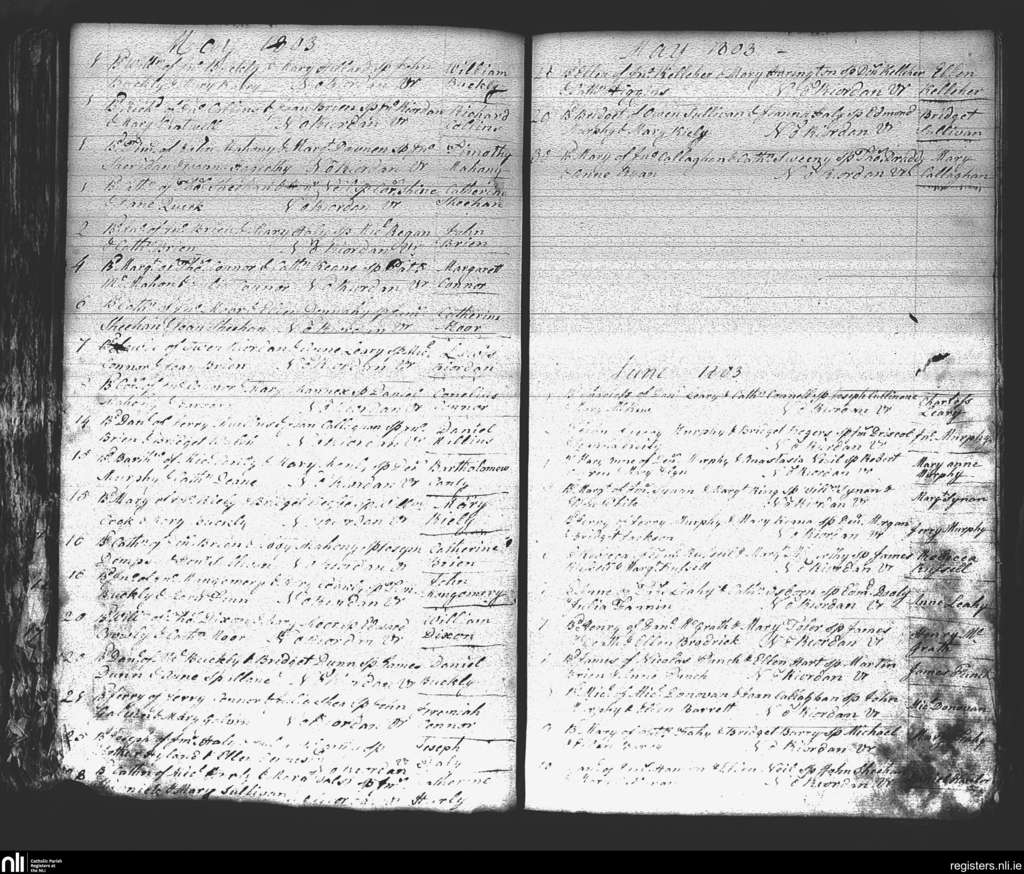 St. Mary's, Cork city; County of Cork; Diocese of Cork and Ross. Baptisms, May 1803 to June 1803