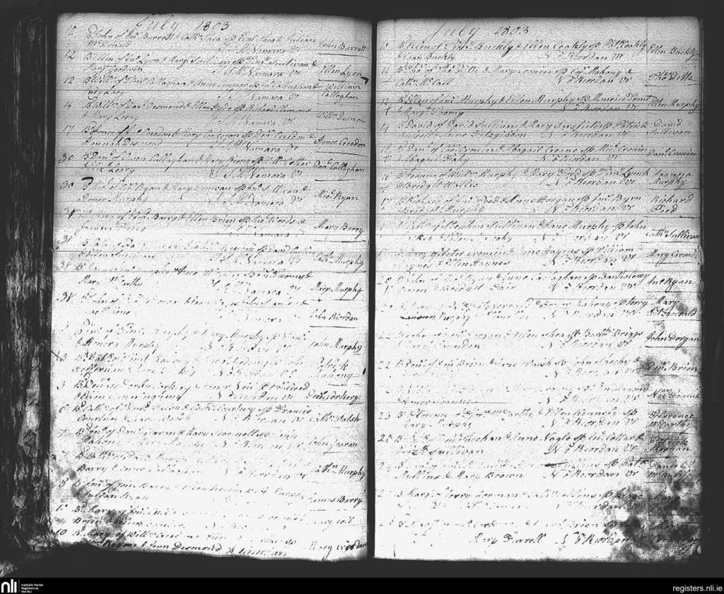 St. Mary's, Cork city; County of Cork; Diocese of Cork and Ross. Baptisms, July 1803