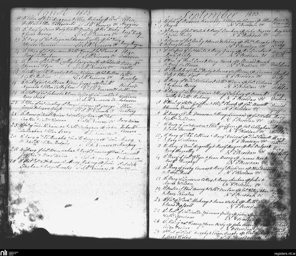 St. Mary's, Cork city; County of Cork; Diocese of Cork and Ross. Baptisms, Aug. 1803 to Sep. 1803