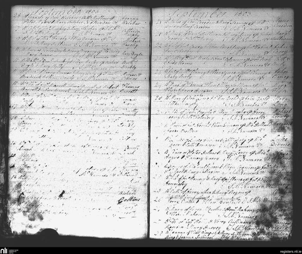 St. Mary's, Cork city; County of Cork; Diocese of Cork and Ross. Baptisms, Sep. 1803