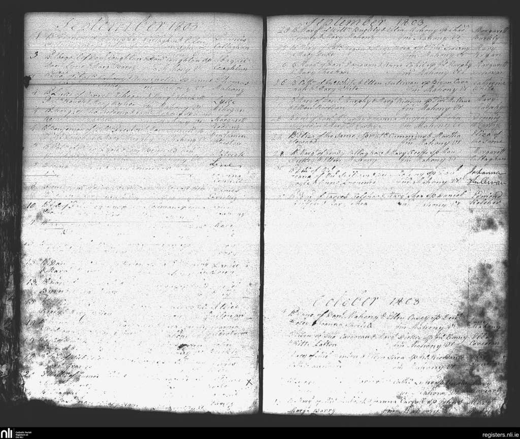 St. Mary's, Cork city; County of Cork; Diocese of Cork and Ross. Baptisms, Sep. 1803 to Oct. 1803
