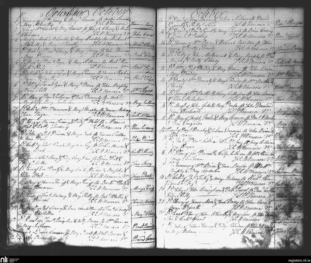 St. Mary's, Cork city; County of Cork; Diocese of Cork and Ross. Baptisms, Oct. 1804