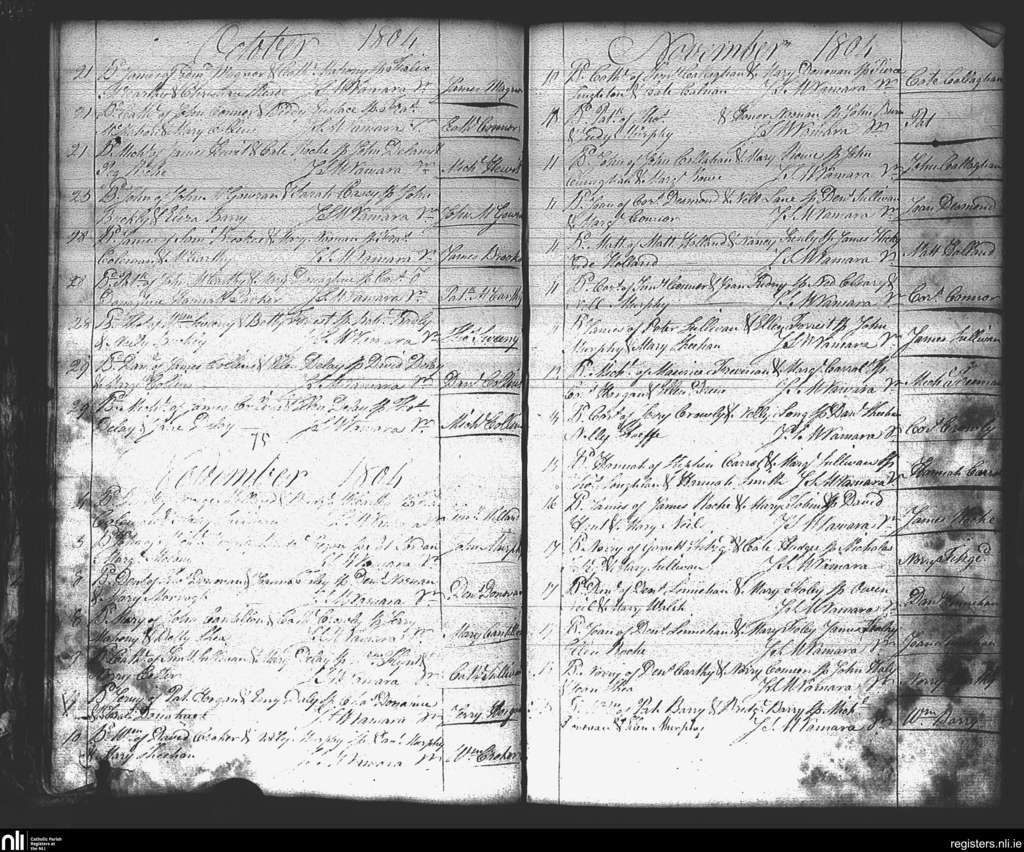 St. Mary's, Cork city; County of Cork; Diocese of Cork and Ross. Baptisms, Oct. 1804 to Nov. 1804