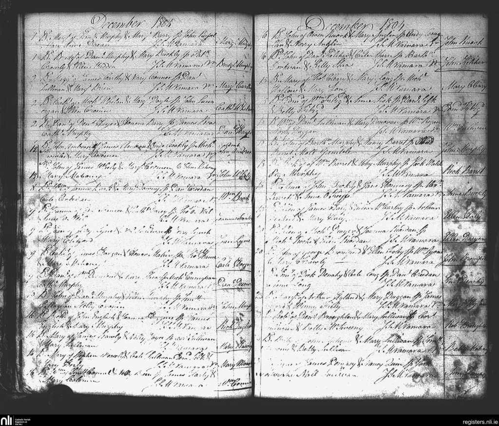 St. Mary's, Cork city; County of Cork; Diocese of Cork and Ross. Baptisms, Dec. 1804