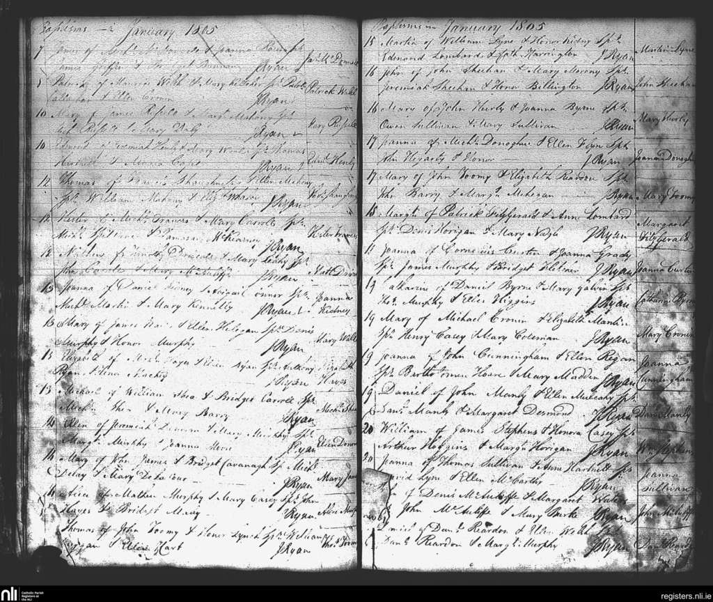 St. Mary's, Cork city; County of Cork; Diocese of Cork and Ross. Baptisms, Jan. 1805