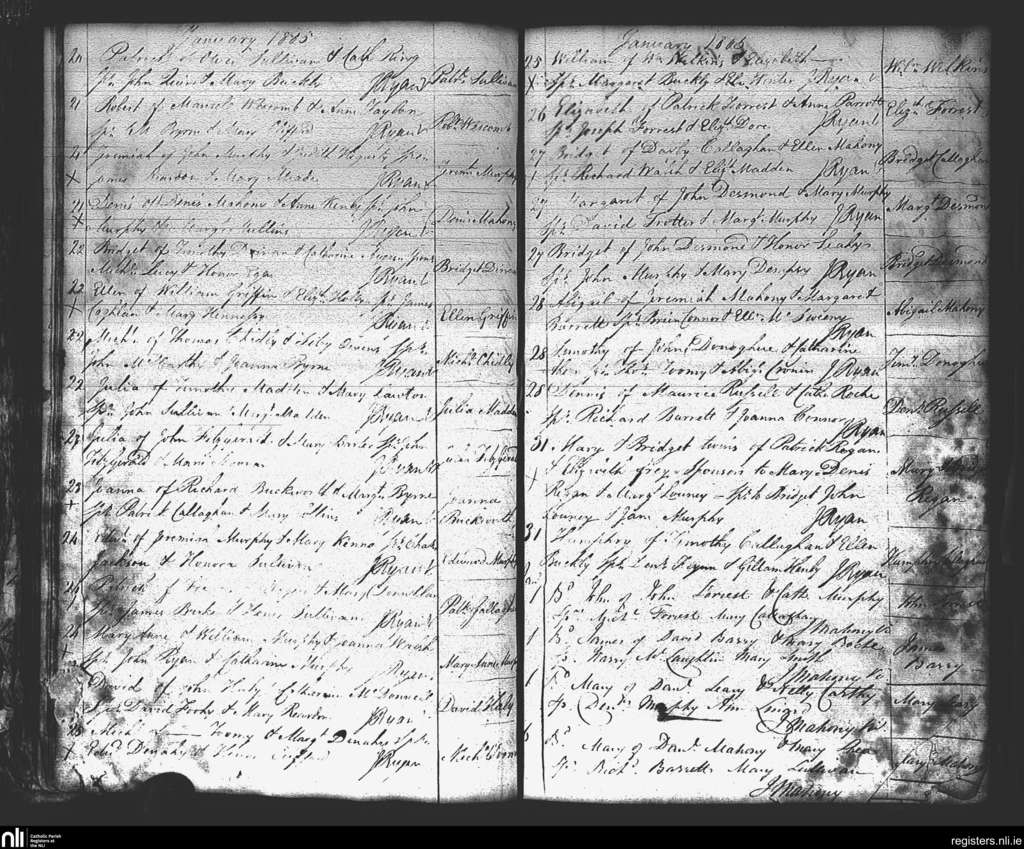 St. Mary's, Cork city; County of Cork; Diocese of Cork and Ross. Baptisms, Jan. 1805