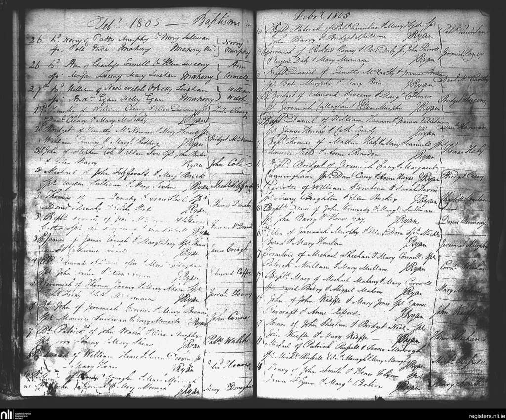 St. Mary's, Cork city; County of Cork; Diocese of Cork and Ross. Baptisms, Feb. 1805