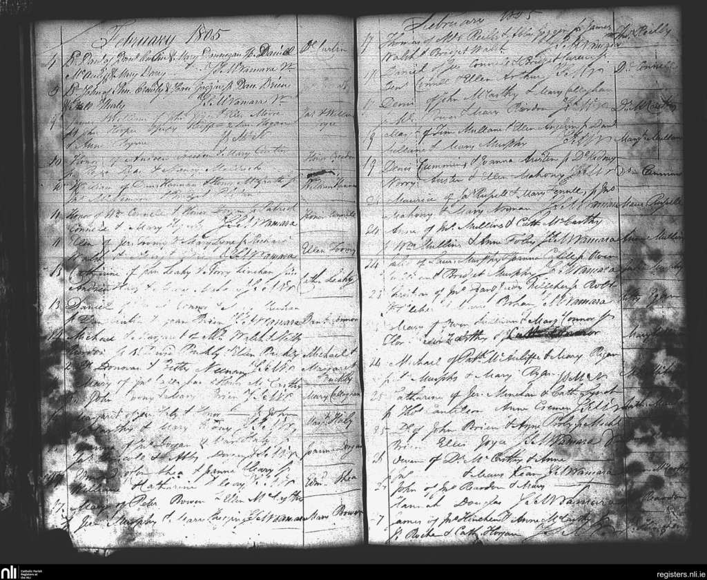 St. Mary's, Cork city; County of Cork; Diocese of Cork and Ross. Baptisms, Feb. 1805