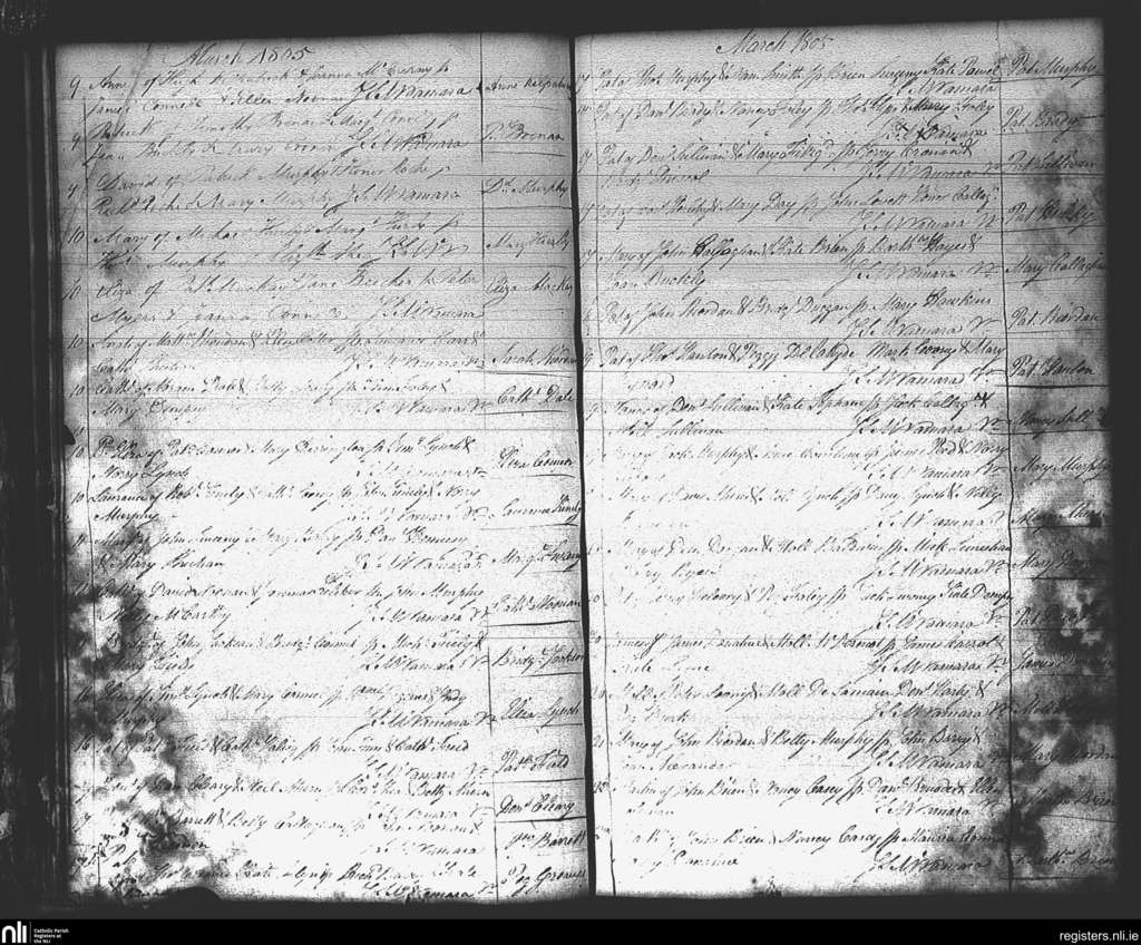 St. Mary's, Cork city; County of Cork; Diocese of Cork and Ross. Baptisms, Mar. 1805