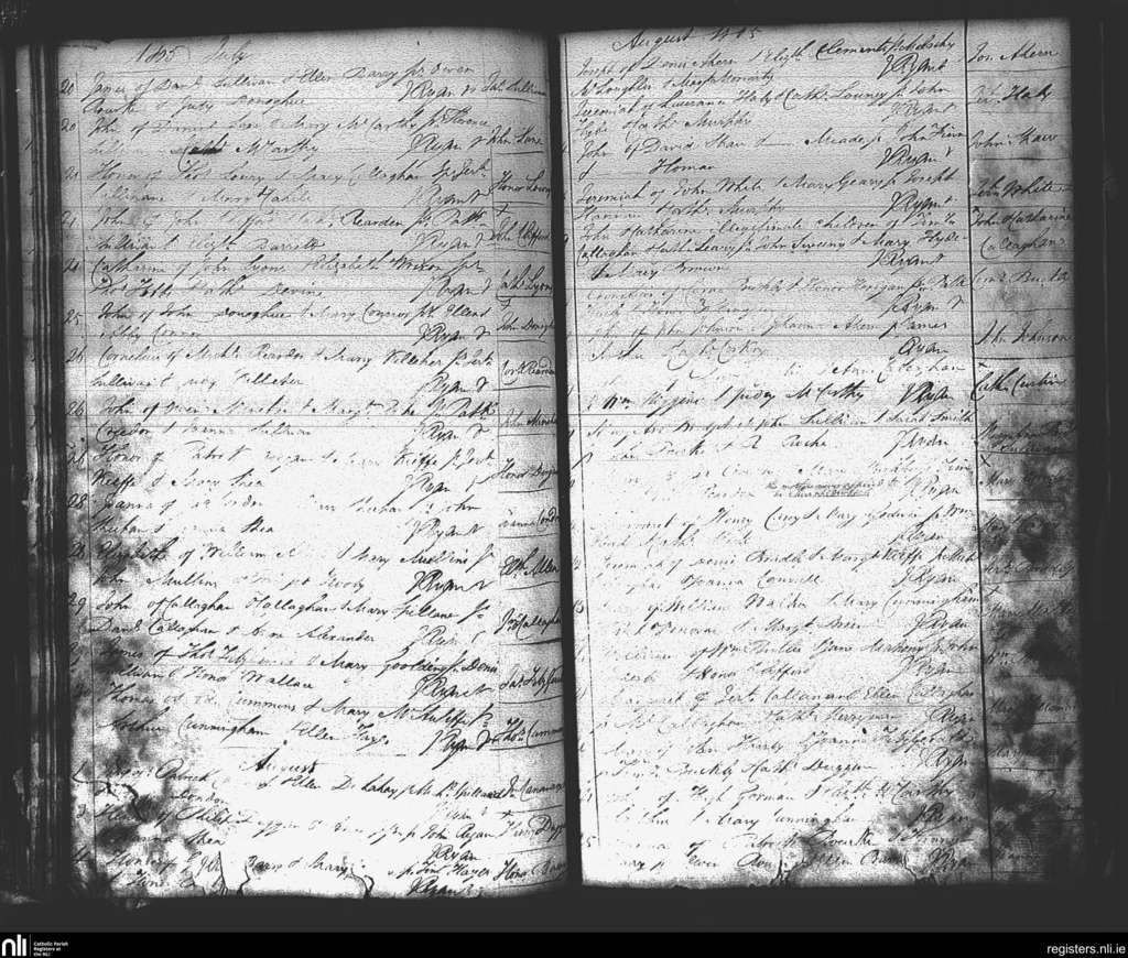 St. Mary's, Cork city; County of Cork; Diocese of Cork and Ross. Baptisms, July 1805 to Aug. 1805