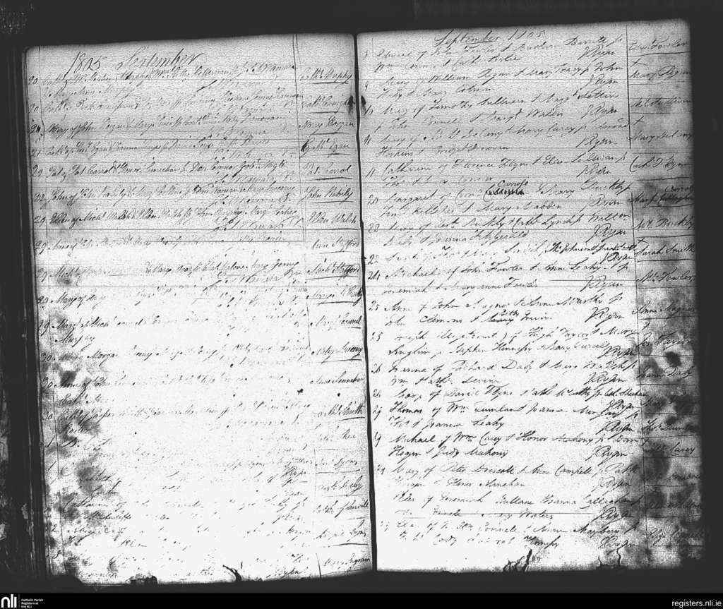 St. Mary's, Cork city; County of Cork; Diocese of Cork and Ross. Baptisms, Sep. 1805