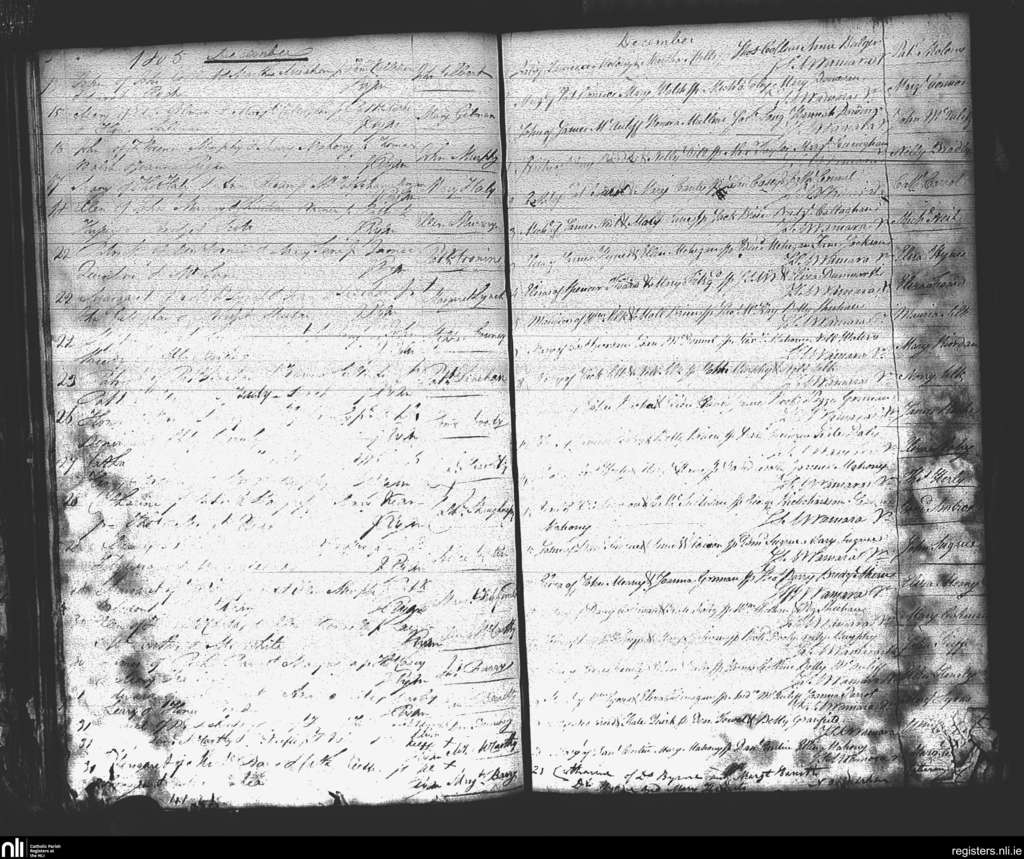 St. Mary's, Cork city; County of Cork; Diocese of Cork and Ross. Baptisms, Dec. 1805