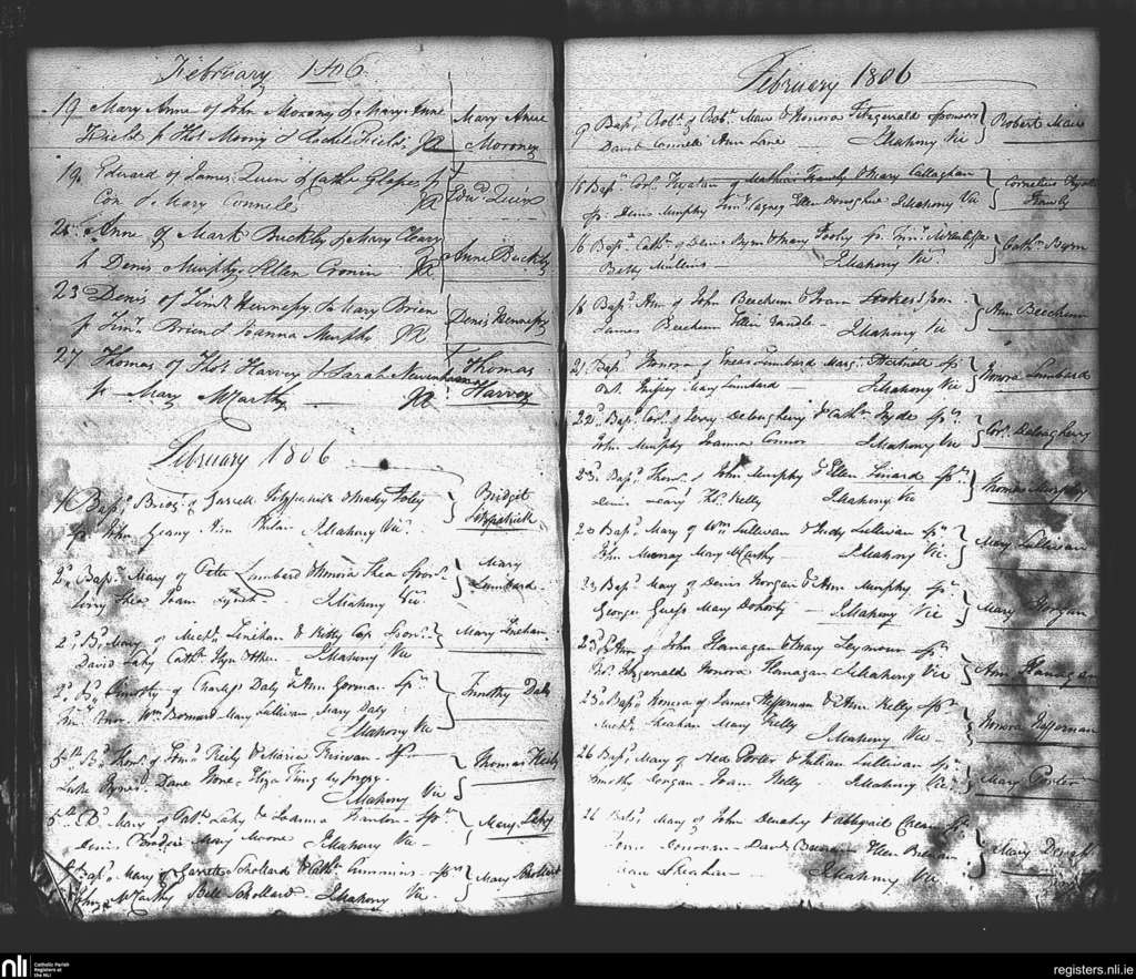 St. Mary's, Cork city; County of Cork; Diocese of Cork and Ross. Baptisms, Feb. 1806