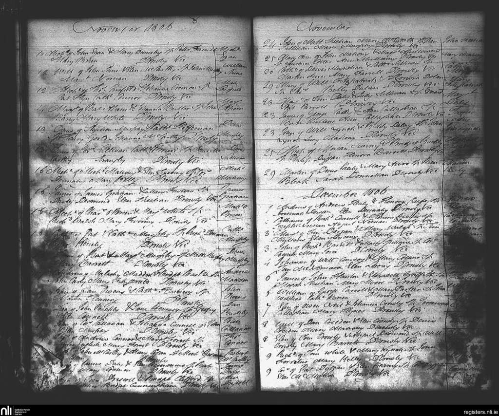 St. Mary's, Cork city; County of Cork; Diocese of Cork and Ross. Baptisms, Nov. 1806 to Dec. 1806