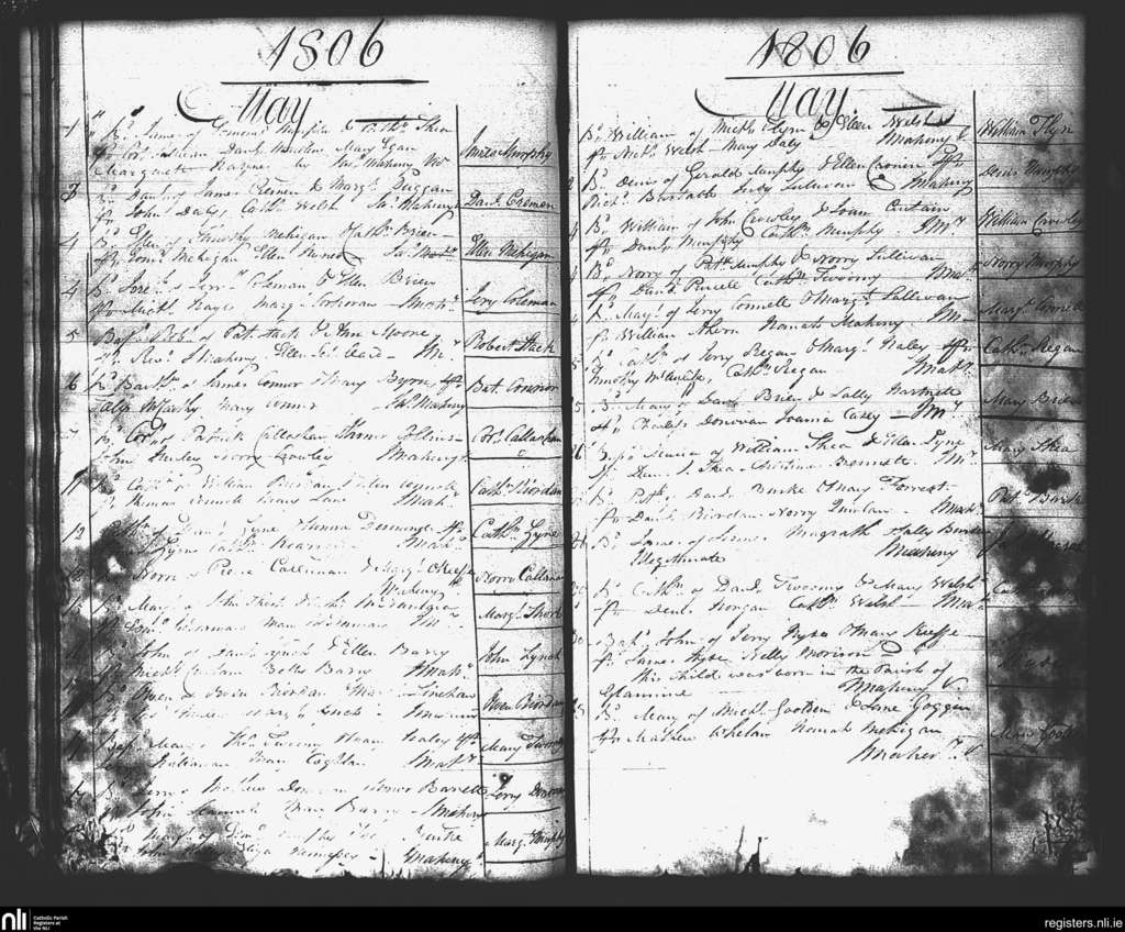 St. Mary's, Cork city; County of Cork; Diocese of Cork and Ross. Baptisms, May 1806