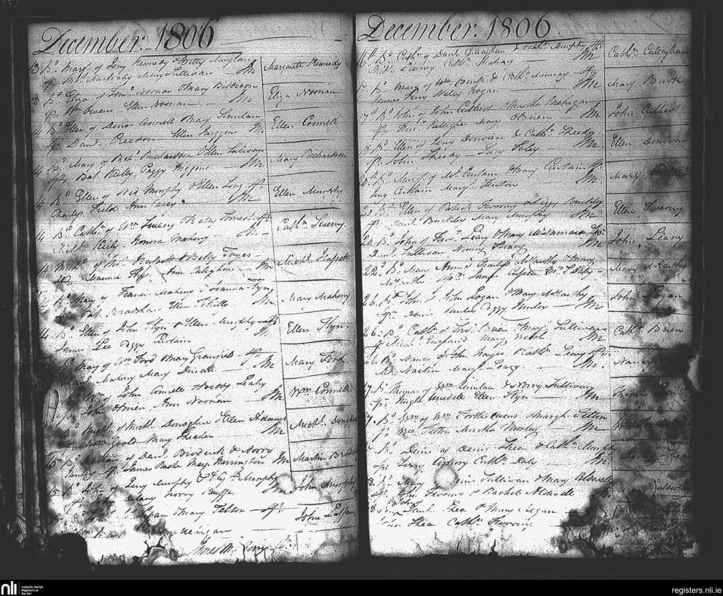 St. Mary's, Cork city; County of Cork; Diocese of Cork and Ross. Baptisms, Dec. 1806