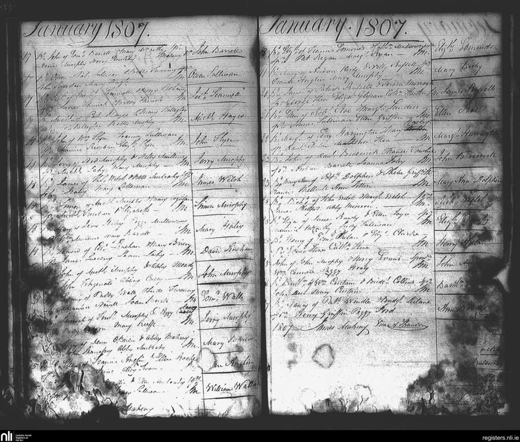 St. Mary's, Cork city; County of Cork; Diocese of Cork and Ross. Baptisms, Jan. 1807
