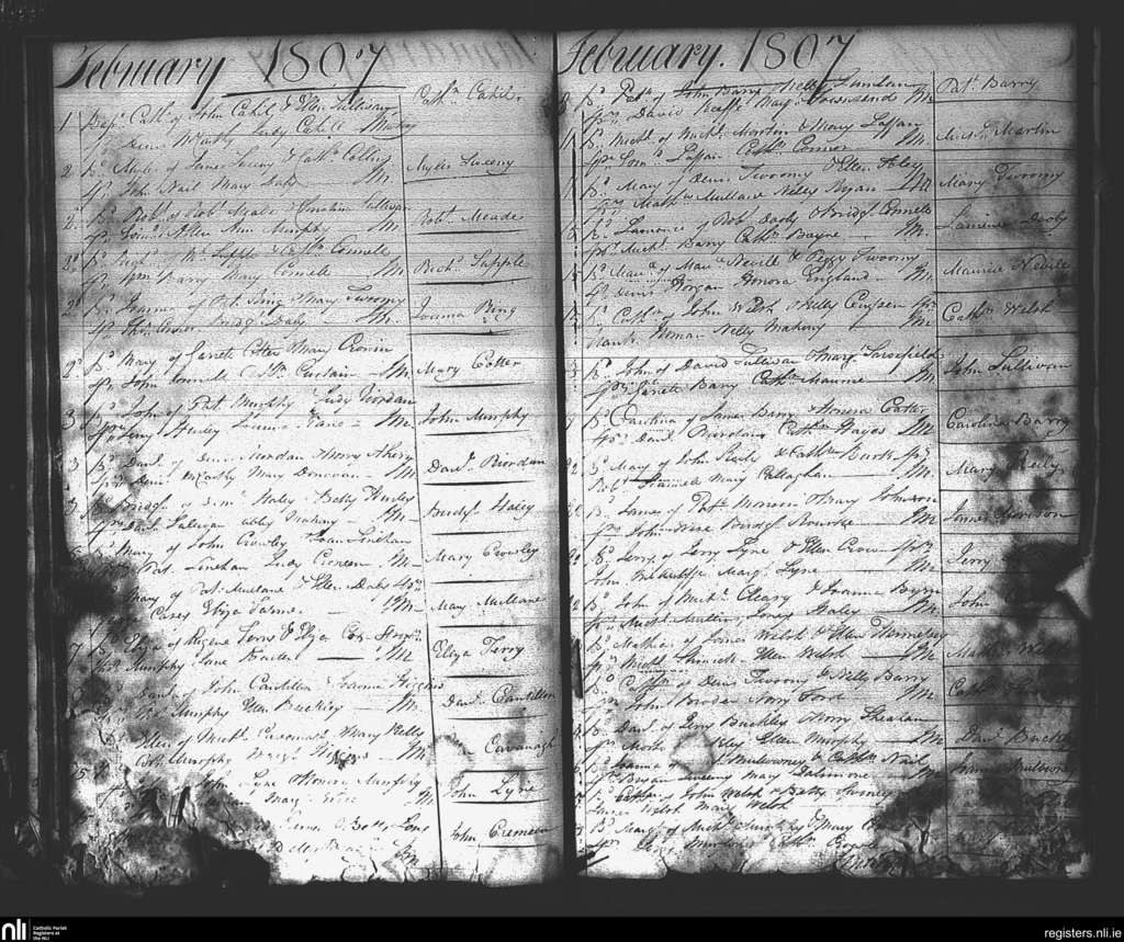 St. Mary's, Cork city; County of Cork; Diocese of Cork and Ross. Baptisms, Feb. 1807