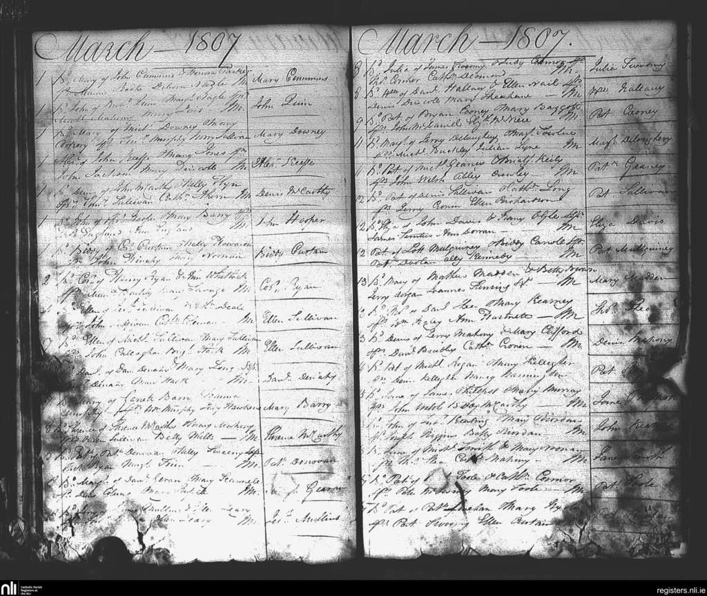 St. Mary's, Cork city; County of Cork; Diocese of Cork and Ross. Baptisms, Mar. 1807