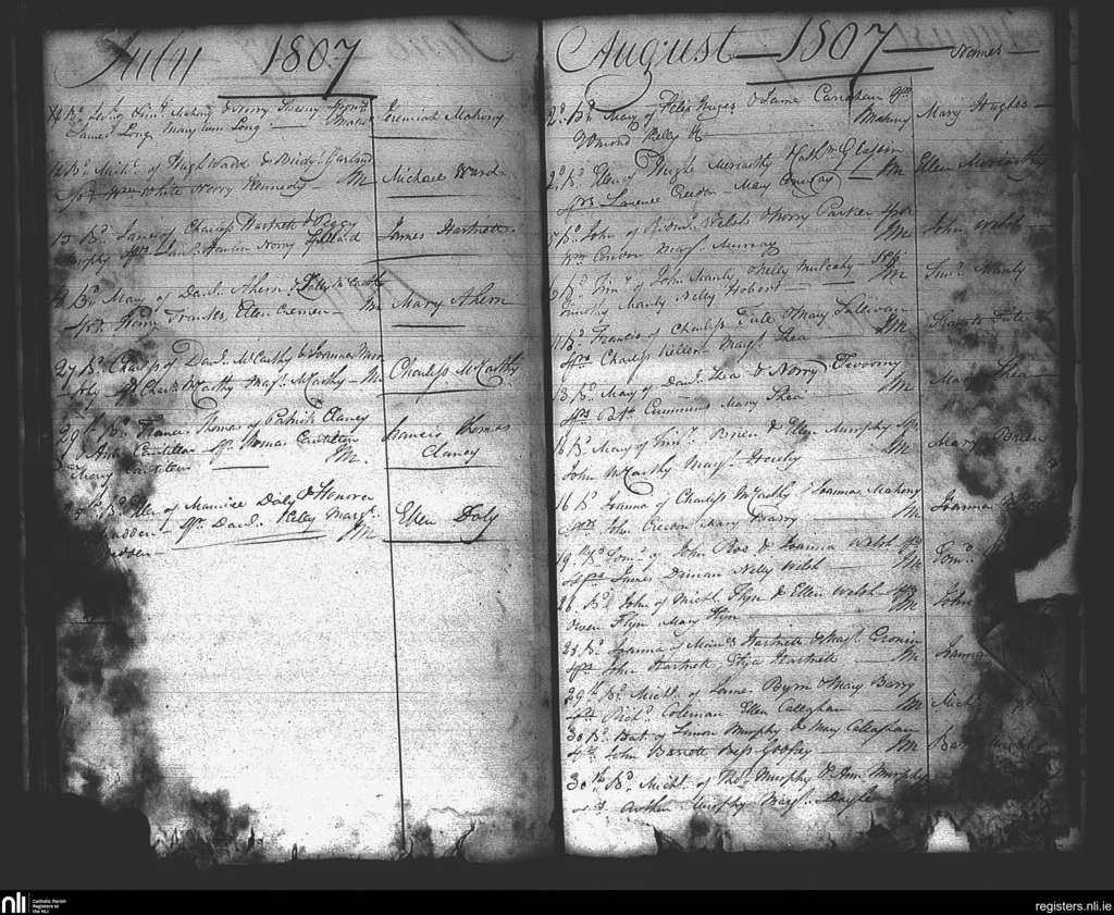 St. Mary's, Cork city; County of Cork; Diocese of Cork and Ross. Baptisms, July 1807 to Aug. 1807