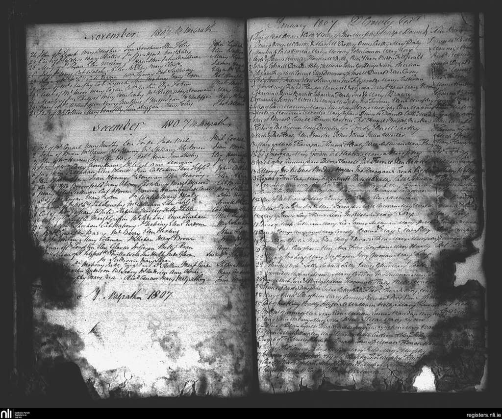 St. Mary's, Cork city; County of Cork; Diocese of Cork and Ross. Baptisms, Jan. 1807 to Dec. 1807