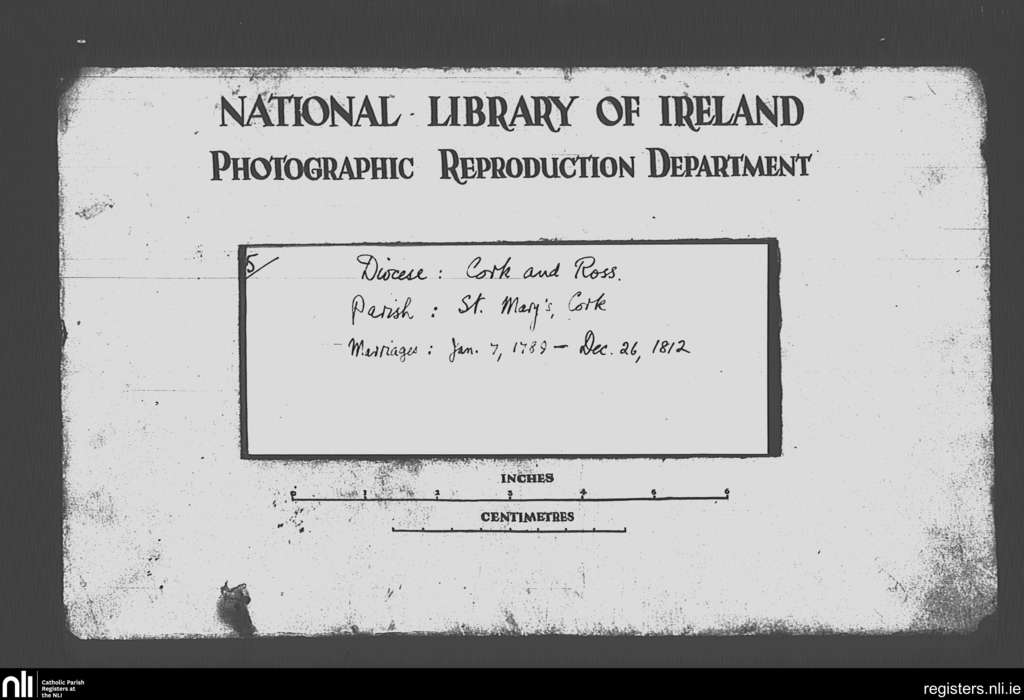 St. Mary's, Cork city; County of Cork; Diocese of Cork and Ross. Marriages