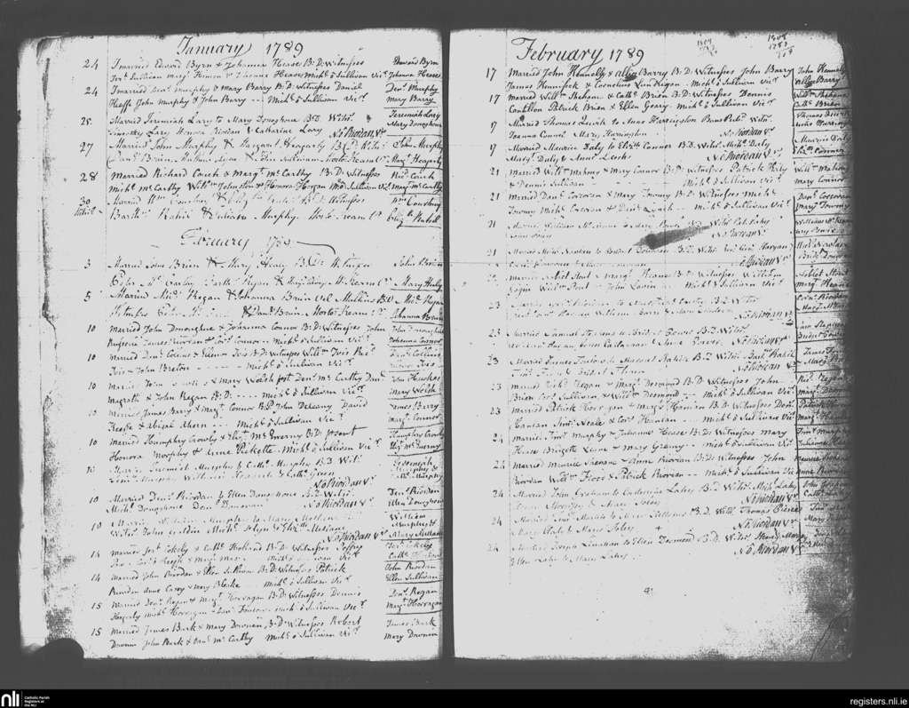 St. Mary's, Cork city; County of Cork; Diocese of Cork and Ross. Marriages, Jan. 1789 to Feb. 1789