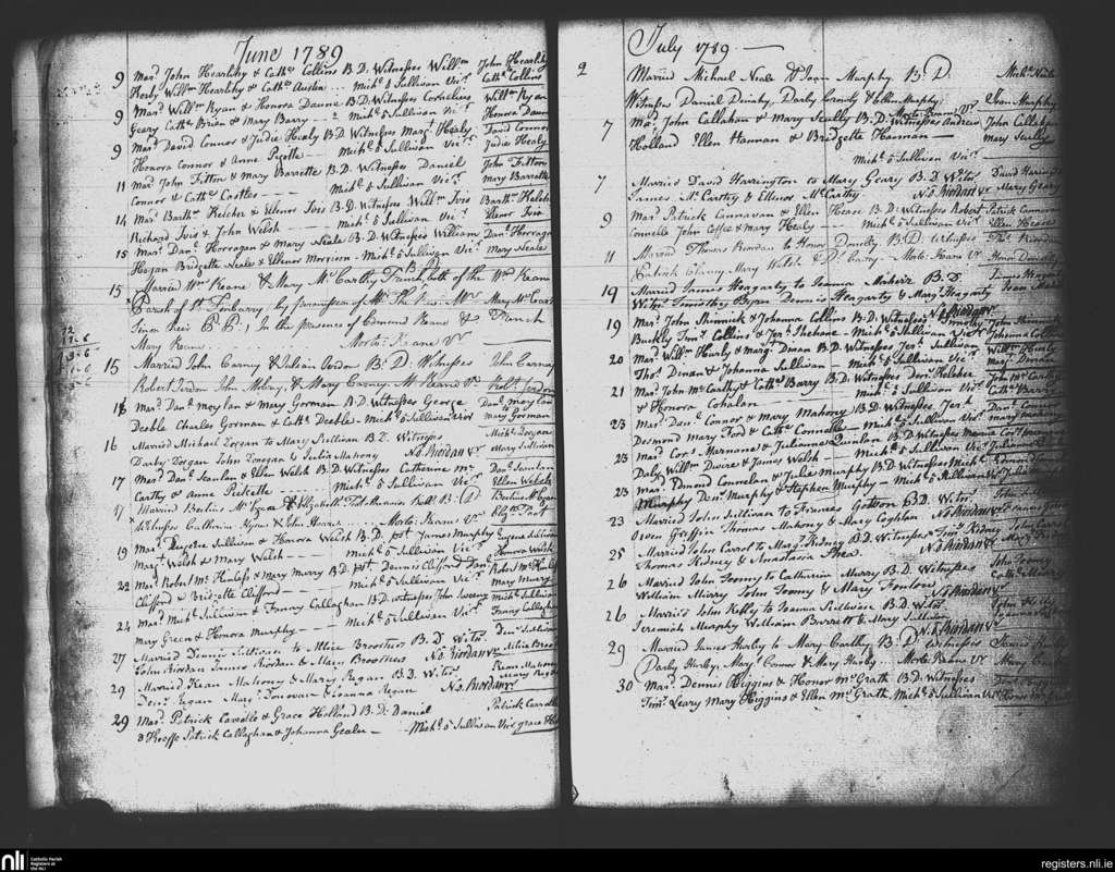 St. Mary's, Cork city; County of Cork; Diocese of Cork and Ross. Marriages, June 1789 to July 1789
