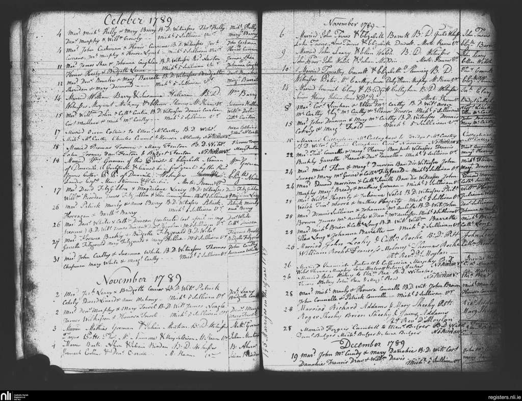 St. Mary's, Cork city; County of Cork; Diocese of Cork and Ross. Marriages, Oct. 1789 to Dec. 1789