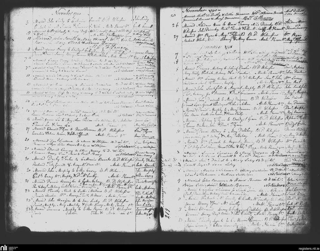 St. Mary's, Cork city; County of Cork; Diocese of Cork and Ross. Marriages, Nov. 1790 to Jan. 1791