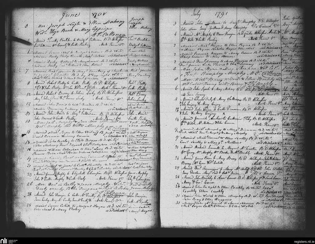 St. Mary's, Cork city; County of Cork; Diocese of Cork and Ross. Marriages, June 1791 to July 1791
