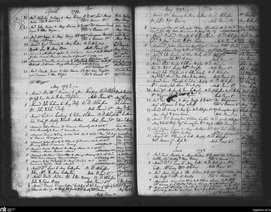 St. Mary's, Cork city; County of Cork; Diocese of Cork and Ross. Marriages, Apr. 1792 to June 1792