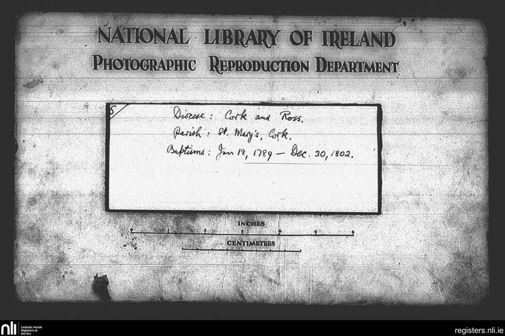 St. Mary's, Cork city; County of Cork; Diocese of Cork and Ross. Baptisms