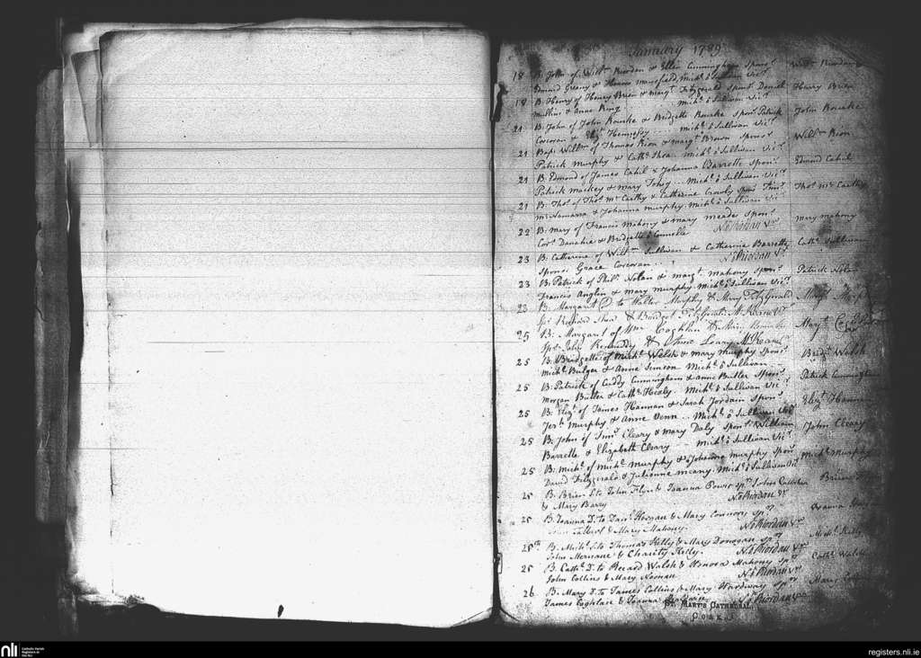 St. Mary's, Cork city; County of Cork; Diocese of Cork and Ross. Baptisms, Jan. 1789