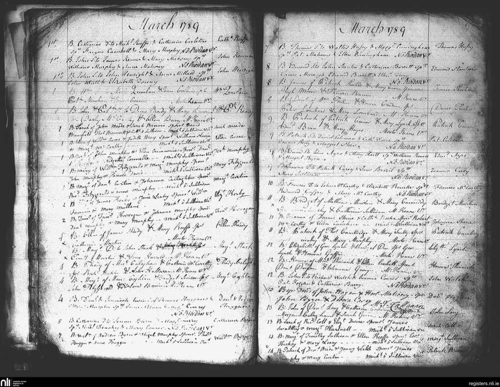 St. Mary's, Cork city; County of Cork; Diocese of Cork and Ross. Baptisms, Mar. 1789